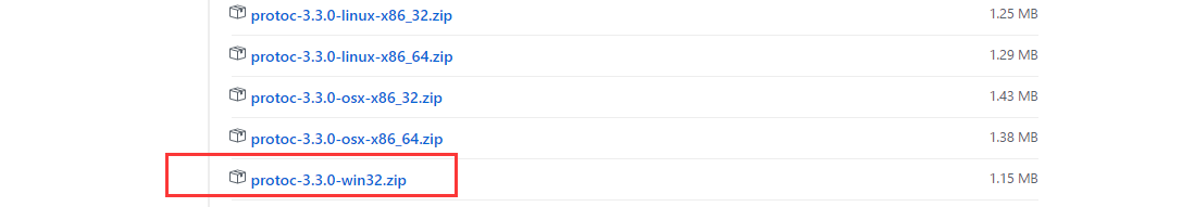 这里采用的二进制文件,选择对应的平台,下载 protoc-3.3.0-win32.zip