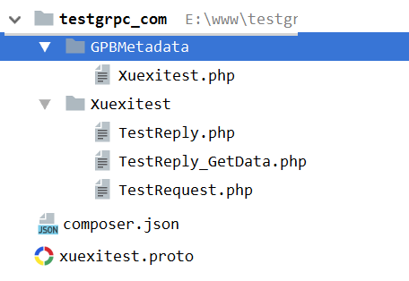 编译 xuexitest.proto 使用 protoc --php_out=. xuexitest.proto 会生成得到: